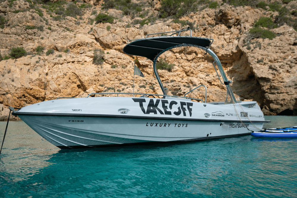 De ervaring begint bij de haven van San Antonio. Het adres is Av. Doctor Fleming, 5 Sant Antoni de Portmany. Daar vind je onze boot, klaar om van de ervaring te genieten. Voordat je op de boot stapt, zorg je er voor dat je de juiste kleding aanhebt. Hierna geeft de instructeur een uitleg over de activiteit. Tijdens deze uitleg vertelt hij de basisregels en communicatiecodes. Daarna is het tijd om de boot op te gaan!