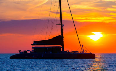 De zonsondergangen op Ibiza behoren tot de beste van het hele Middellandse Zeegebied. Wij brengen je een prachtige zonsondergang die je niet mag missen als je het eiland bezoekt. Mis de kans niet om op de boot de mooiste zonsondergangen van het eiland te zien terwijl je geniet van een inbegrepen drankje, goede muziek en de laatste duik van de dag. Terwijl de zon afscheid neemt van de dag, kun je de kleuren in de lucht bewonderen en hoe de zon ondergaat aan de horizon. Er is geen betere manier om afscheid te nemen van de dag en de nacht te beginnen op Ibiza. Ideaal om met vrienden of familie te gaan.