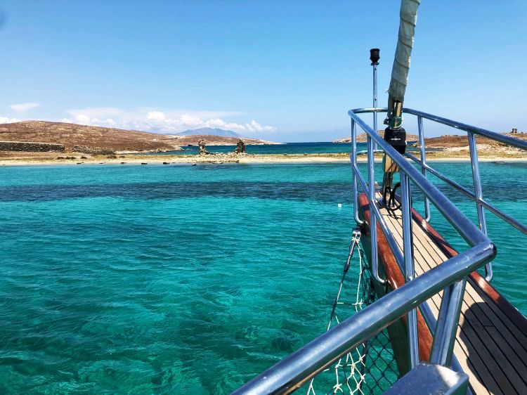 Na ongeveer 2 uur op het ongerepte eilandje Rhenia, is de volgende stop Delos Island, een van de belangrijkste archeologische vindplaatsen uit de Griekse geschiedenis aan de beurt. De bemanning zal u helpen met uitstappen door een korte vaartocht naar het kleine dok van Delos. We brengen ongeveer 1½ uur door op het eiland met de professionele Engelssprekende gids en er is ongeveer 30 minuten vrije tijd waarbi je het eiland kunt ontdekken.
